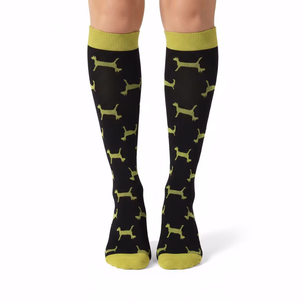 Svart/grön hund stödstrumpa